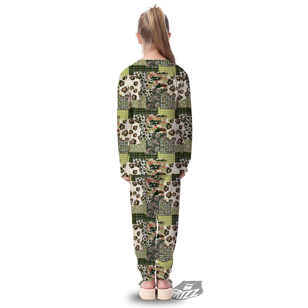 Green Camouflage Tartan Paisley Patchwork Print Pattern Kid's Pajamas