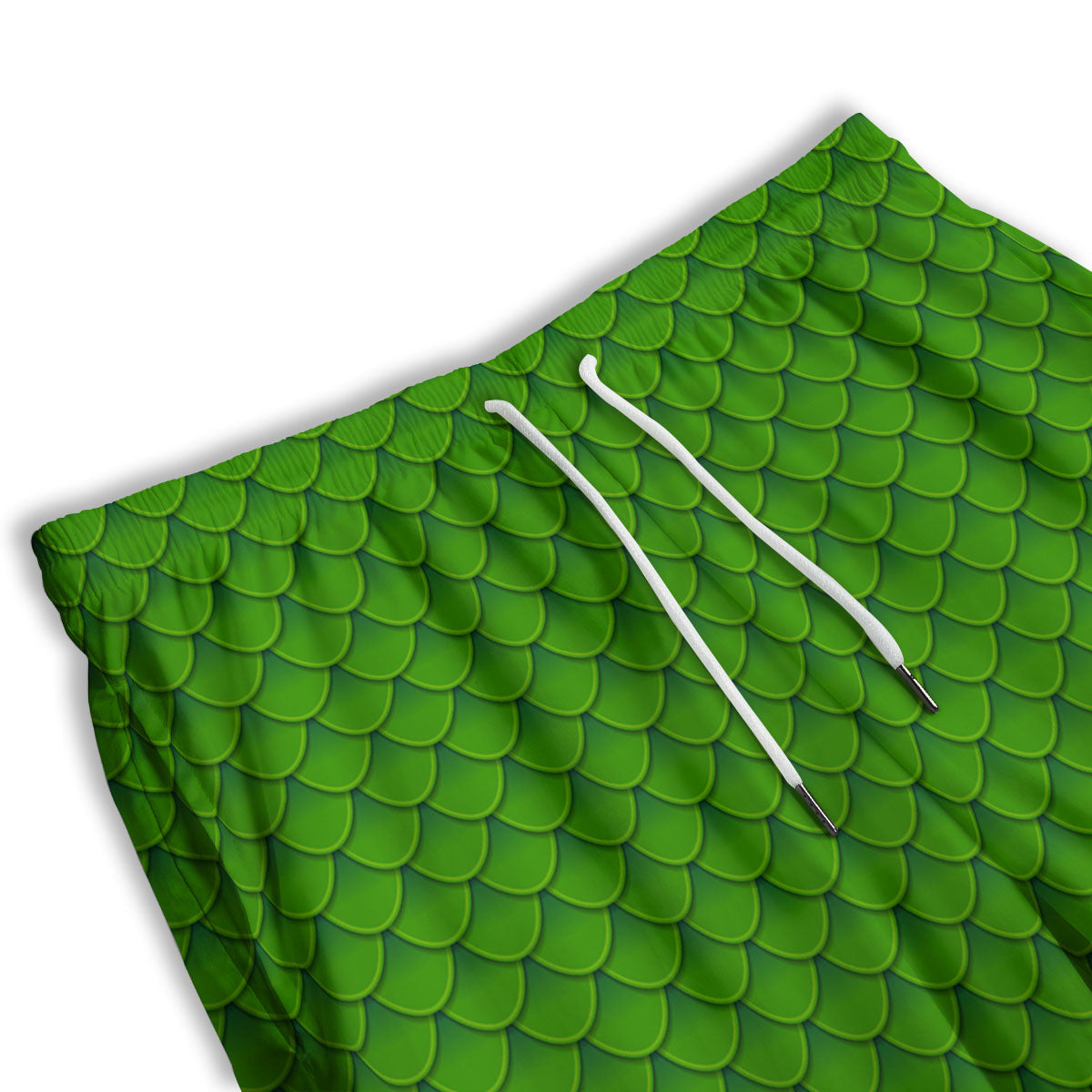 Green Dragon Scales Print Pattern Men's Athletic Shorts