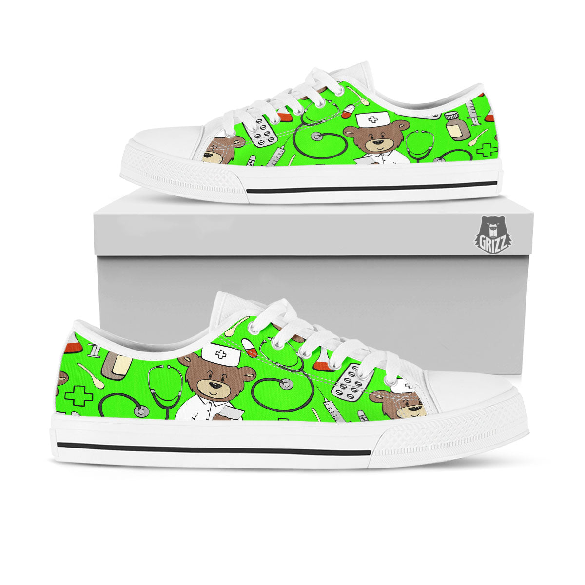 Looking for a unique low top shoes? Check out our Green Neon Teddy Bear Nurse White Low Top Shoes at Grizzshopping. Our low top shoes are handcrafted to the highest quality standards that custom made for you