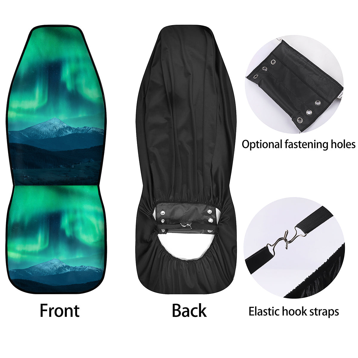 Looking for a unique car seat cover? Check out our Green Northern Lights And Snowy Mountains Print Car Seat Covers at Grizzshopping. Our car seat cover are handcrafted to the highest quality standards that custom made for you Constructed with high quality polyester micro-fiber fabric for maximum durability and comfort.
