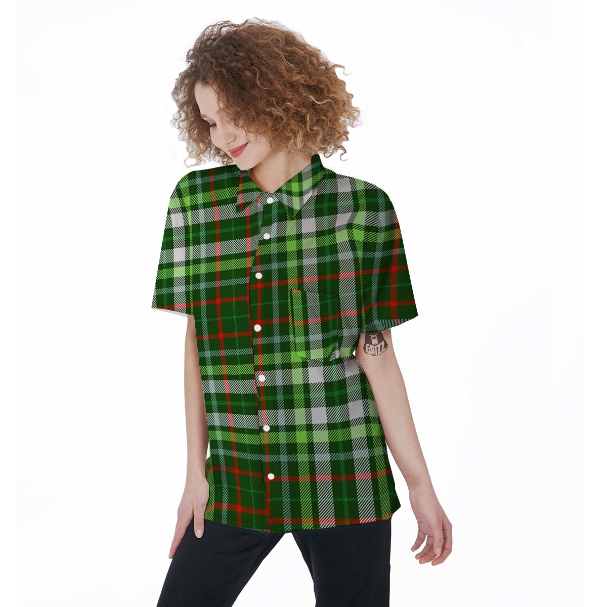 Green Plaid Tartan Women's Short Sleeve Shirts