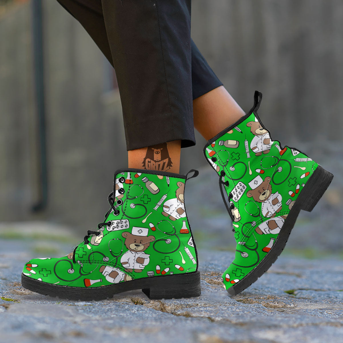 Looking for a unique Boots? Check out our Green Teddy Bear Nurse Leather Boots at Grizzshopping. Our Boots are handcrafted to the highest quality standards that custom made for you