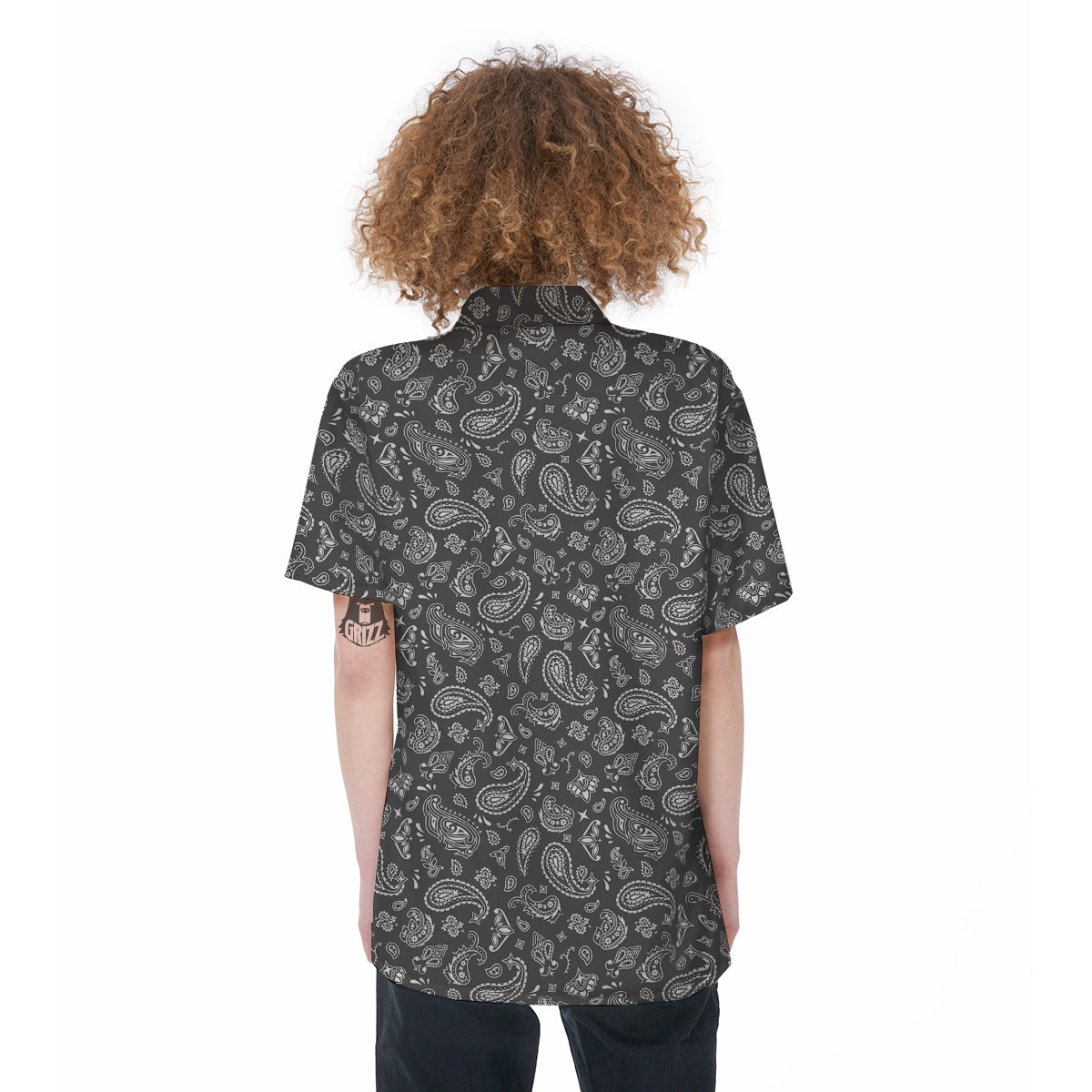 Grey Paisley Bandana Print Women's Short Sleeve Shirts