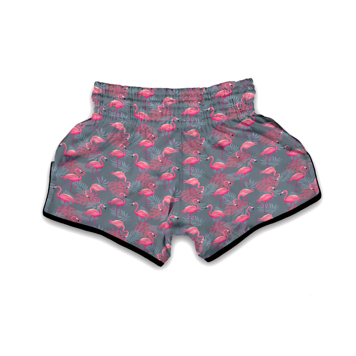 Grey Tropical Flamingo Muay Thai Boxing Shorts