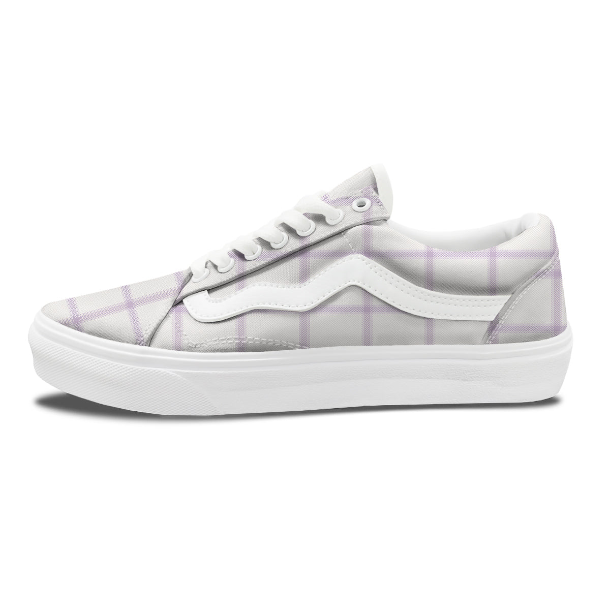 Grey White And Purple Tattersall Print Pattern Skate Shoes