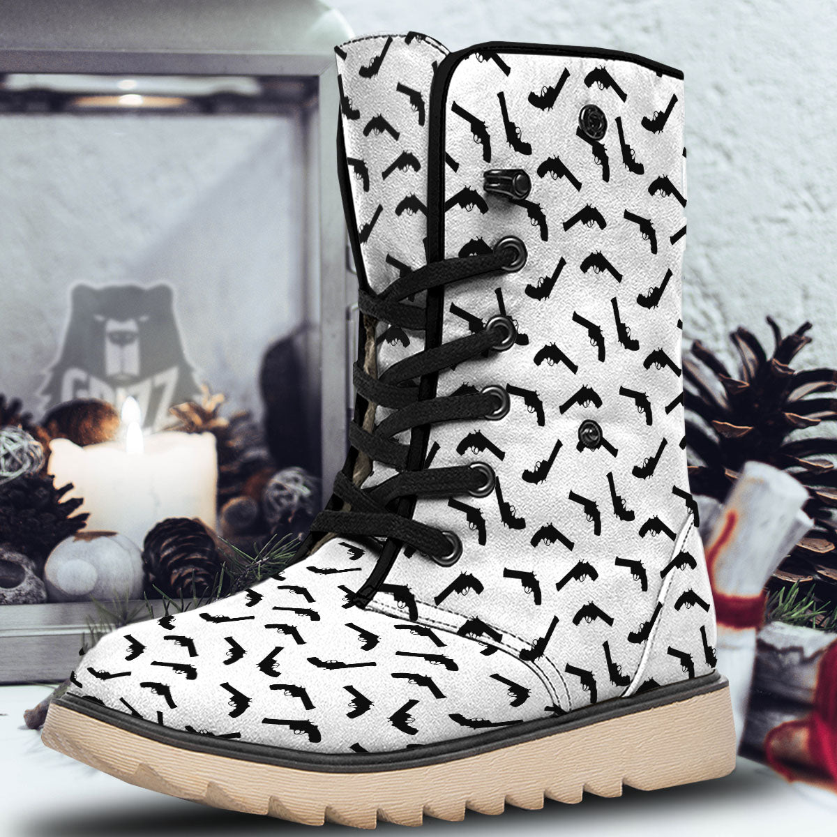 Looking for unique snow boots? Check out our Guns White And Black Print Pattern Snow Boots at Grizzshopping. Our snow boots are handcrafted to the highest quality standards that custom made for you