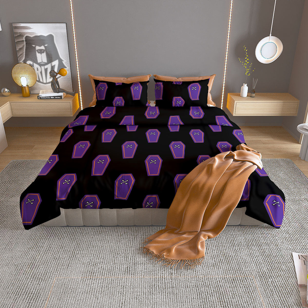Halloween Coffin Purple Print Pattern Duvet Cover Bedding Set