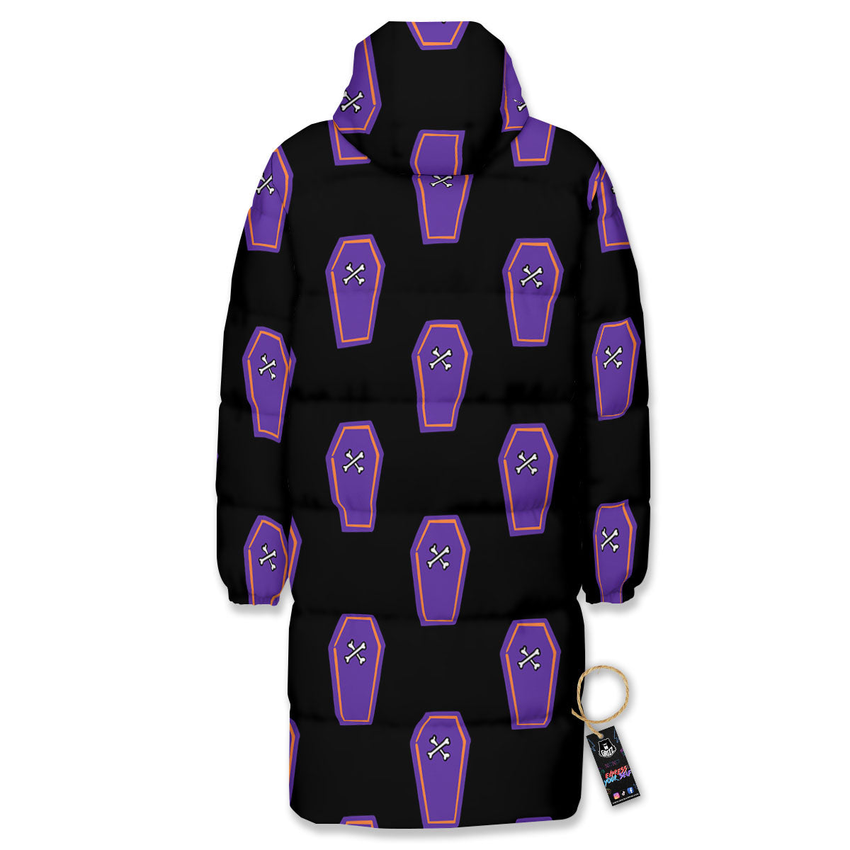 Halloween Coffin Purple Print Pattern Long Down Jacket