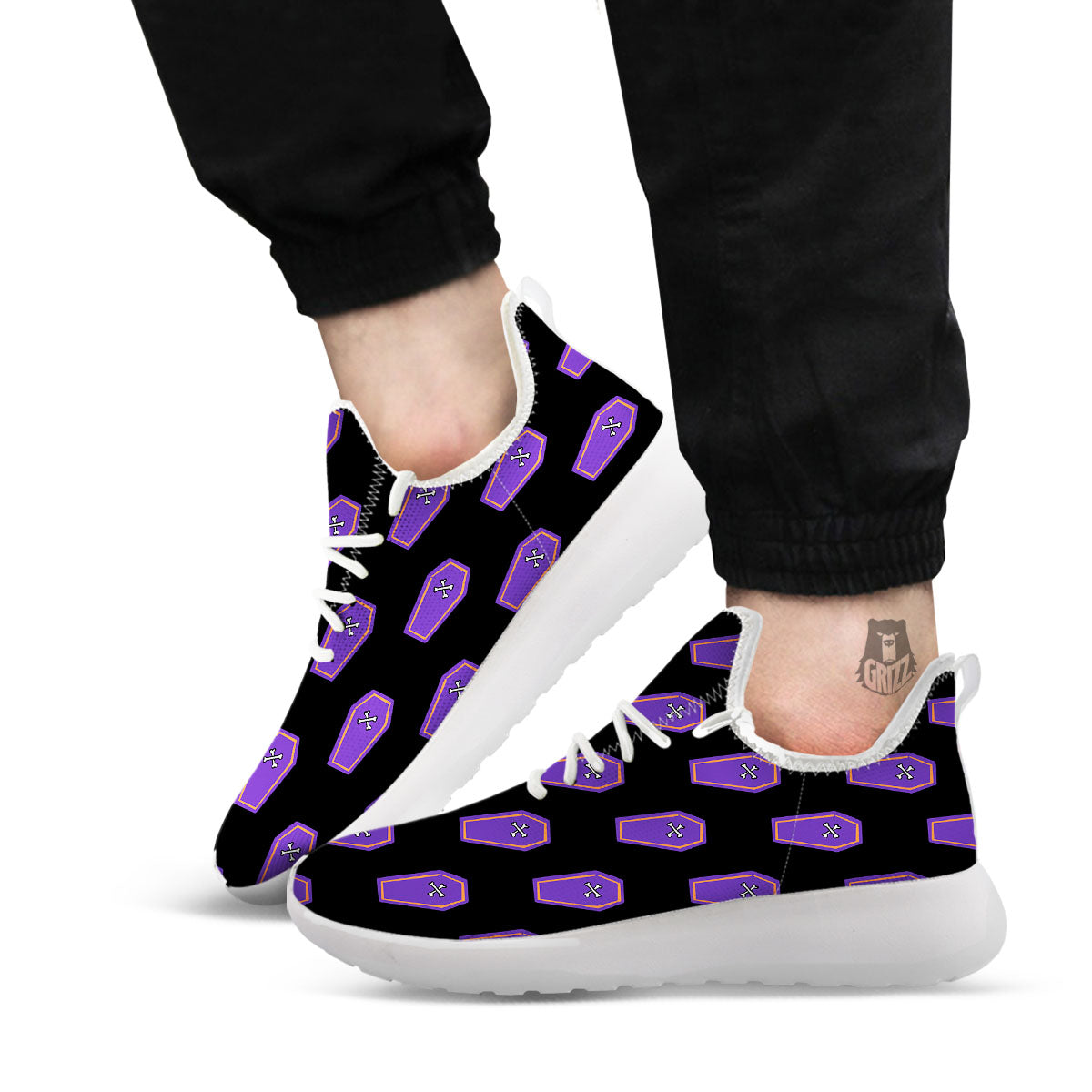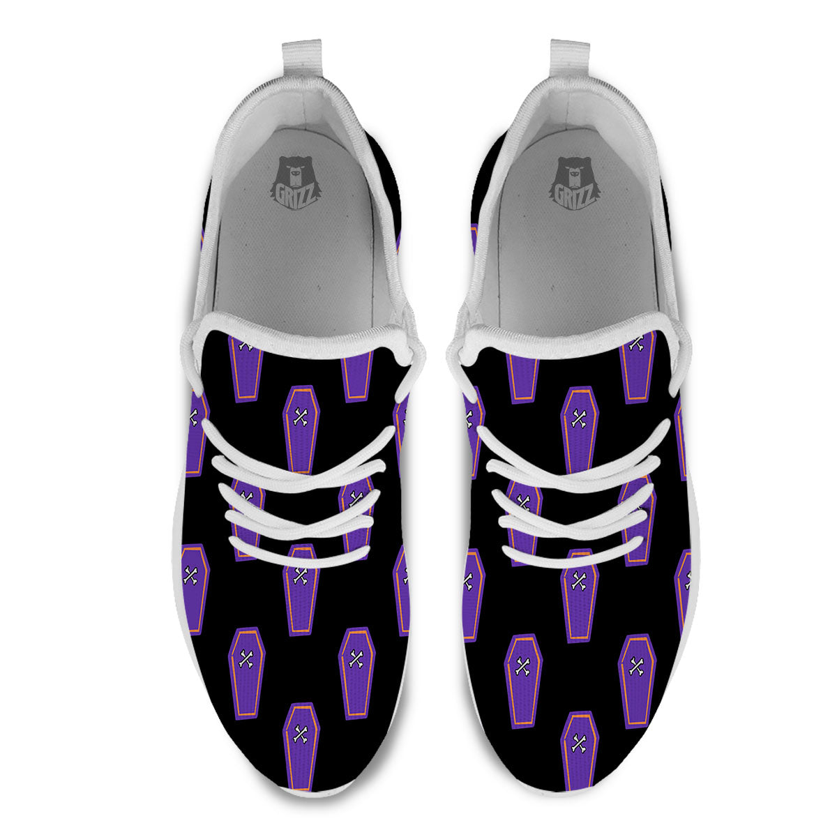 Halloween Coffin Purple Print Pattern White Athletic Shoes