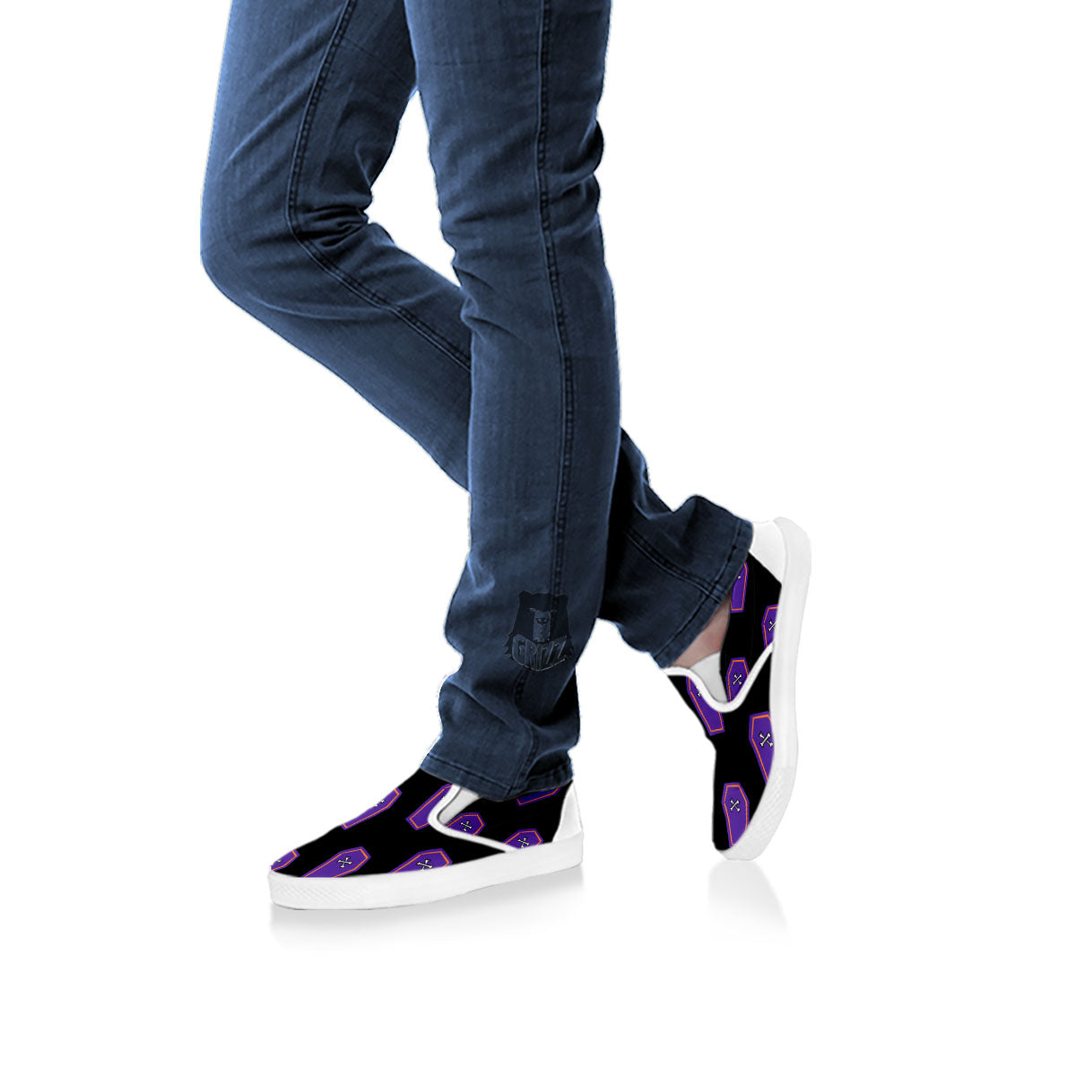 Halloween Coffin Purple Print Pattern White Slip On Shoes