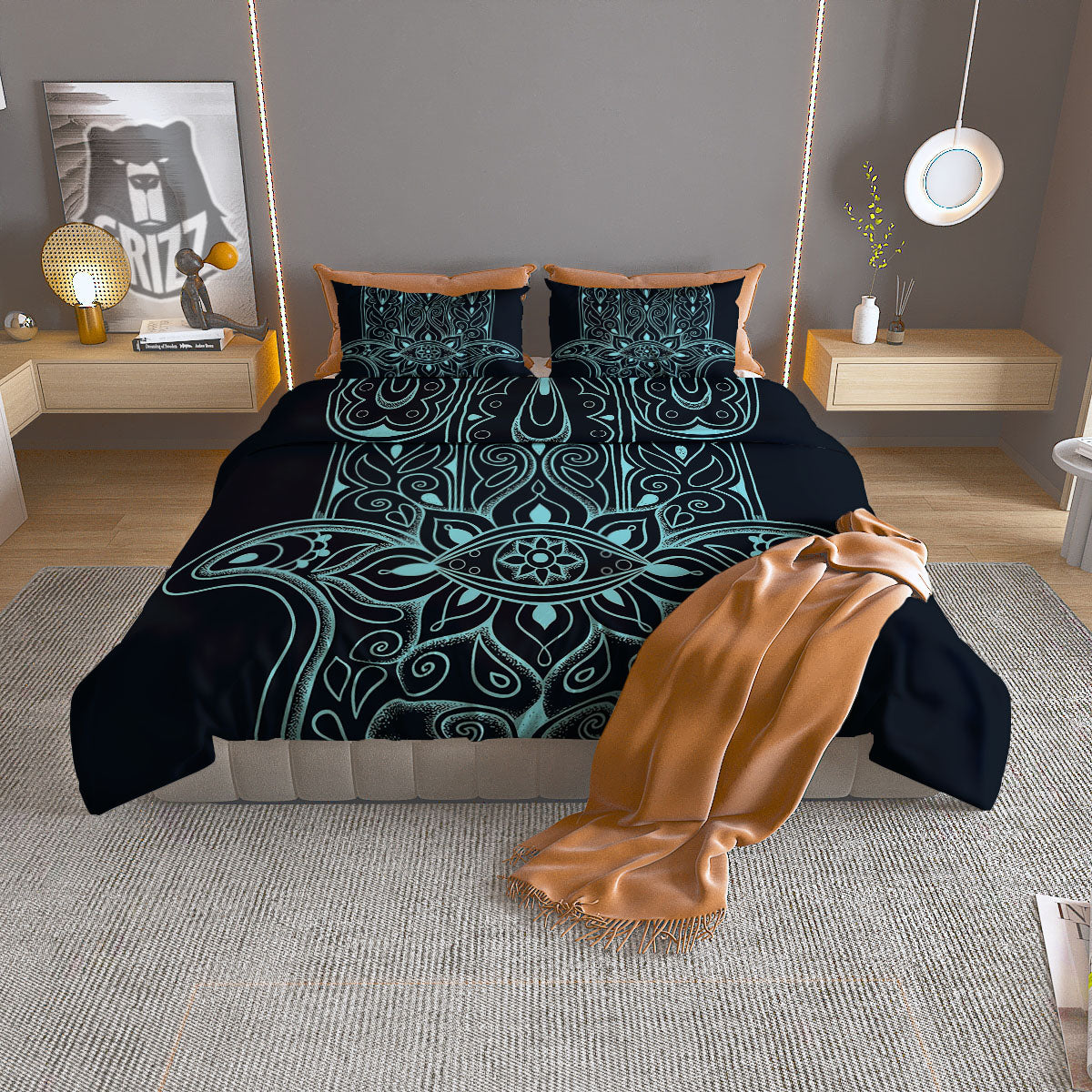 Hamsa Hand Fatima Spirital Print Duvet Cover Bedding Set