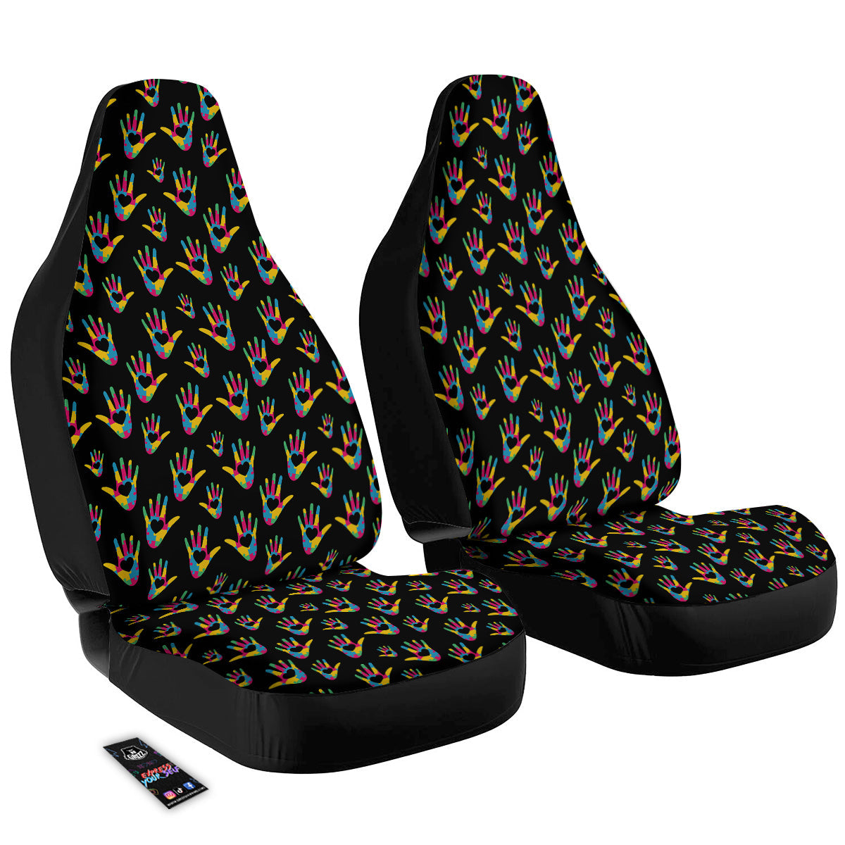Hand Shaped Autism Day Print Pattern Car Seat Covers