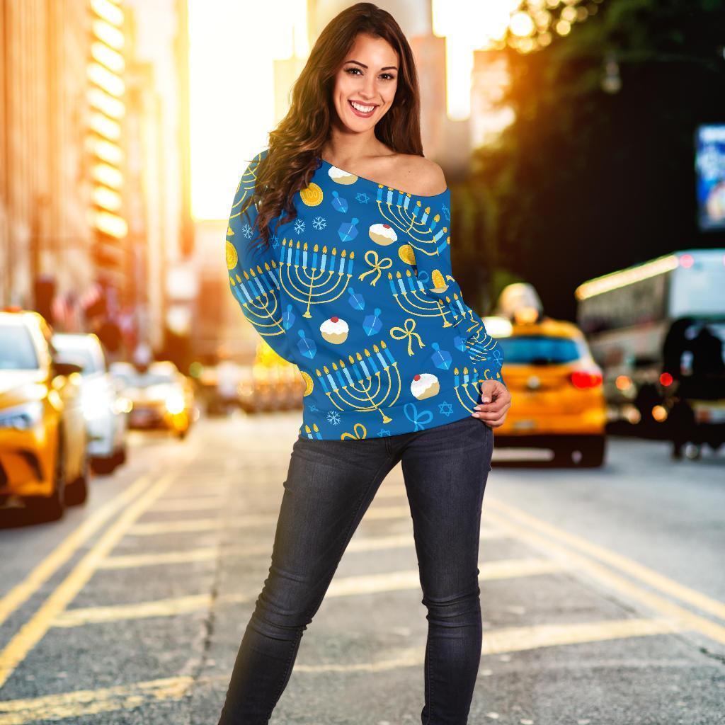 Looking for a unique shoulder sweater? Check out our Hanukkah Pattern Print Women Off Shoulder Sweatshirt at Grizzshopping. Our shoulder sweater are handcrafted to the highest quality standards that custom made for you