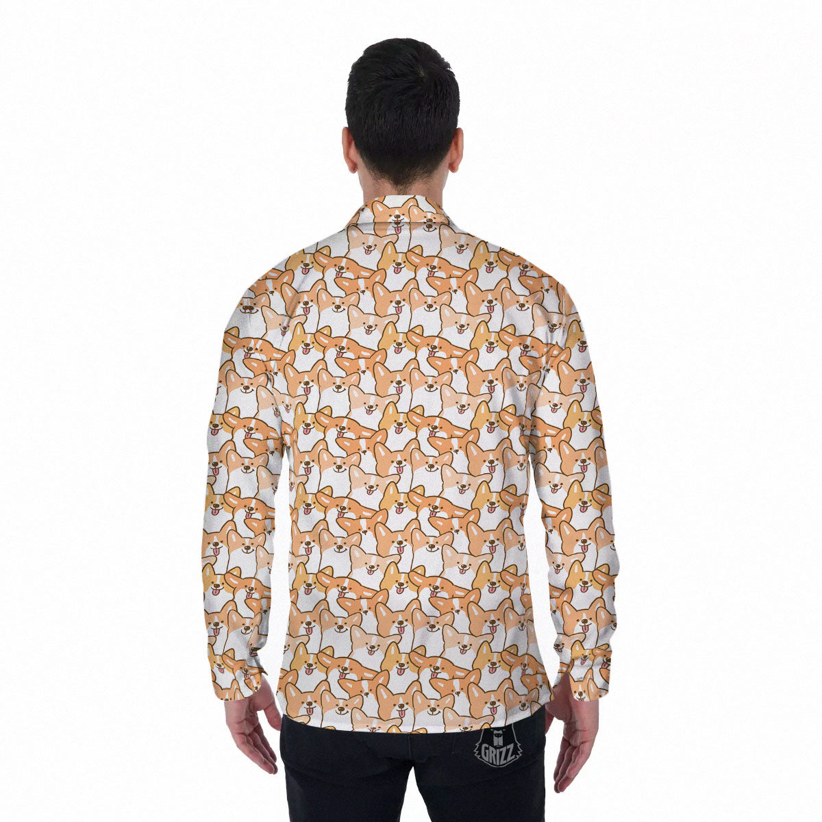 Happy Corgi Print Pattern Men's Long Sleeve Shirts