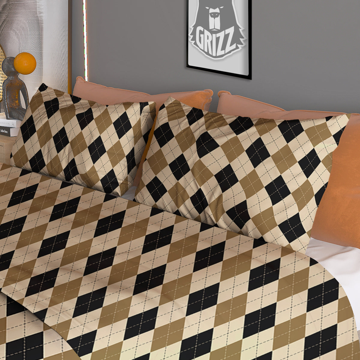 Harlequin Gold And Black Print Pattern Duvet Cover Bedding Set
