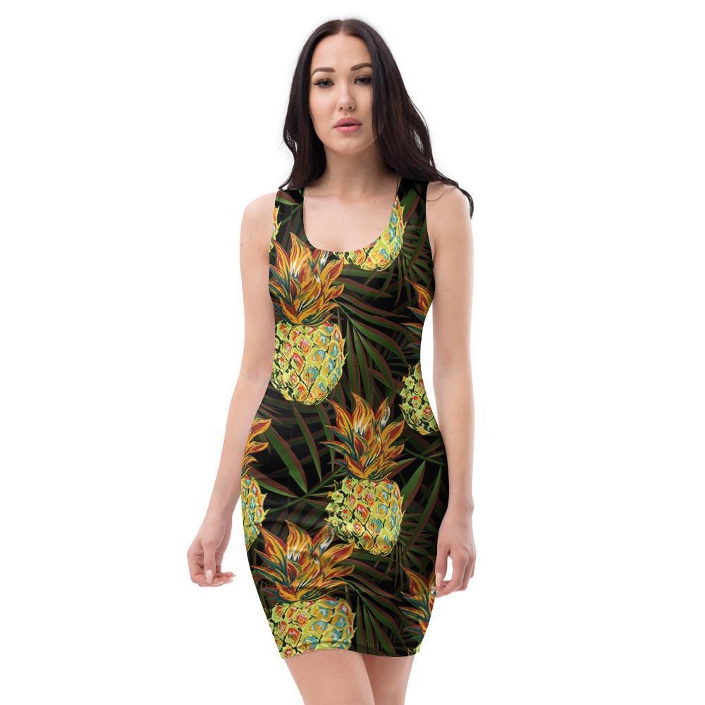 Hawaiian Golden Pineapple Edm Print Bodycon Dress