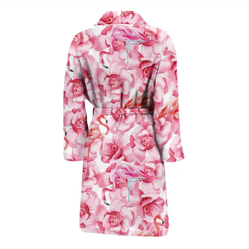 Hawaiian Tropical Flamingo Floral Pattern Print Men Long Robe