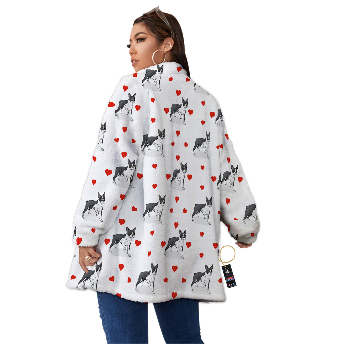 Heart Bull Terrier Print Pattern Women's Sherpa Jacket
