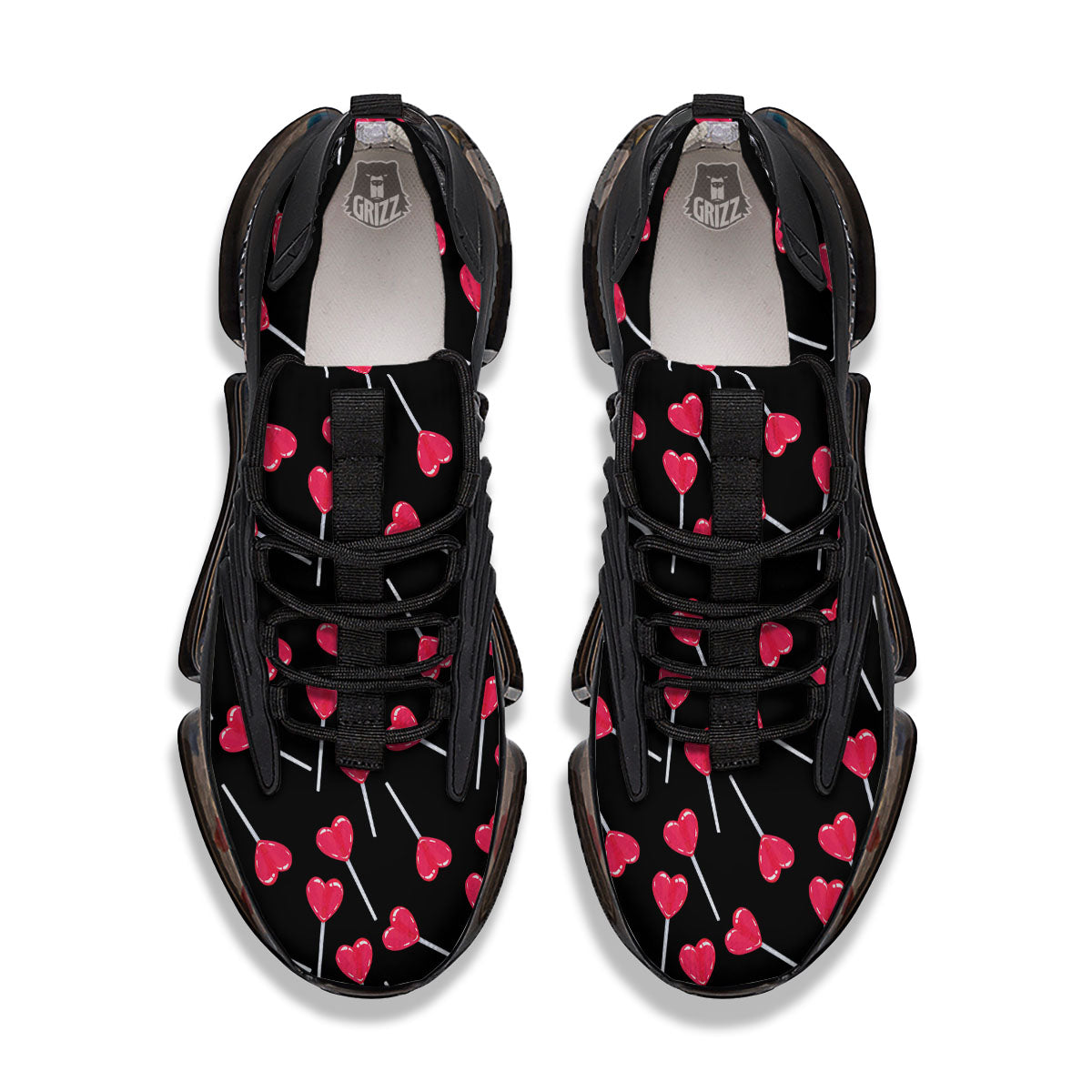 Heart Pink Lollipop Print Pattern Black Gym Shoes