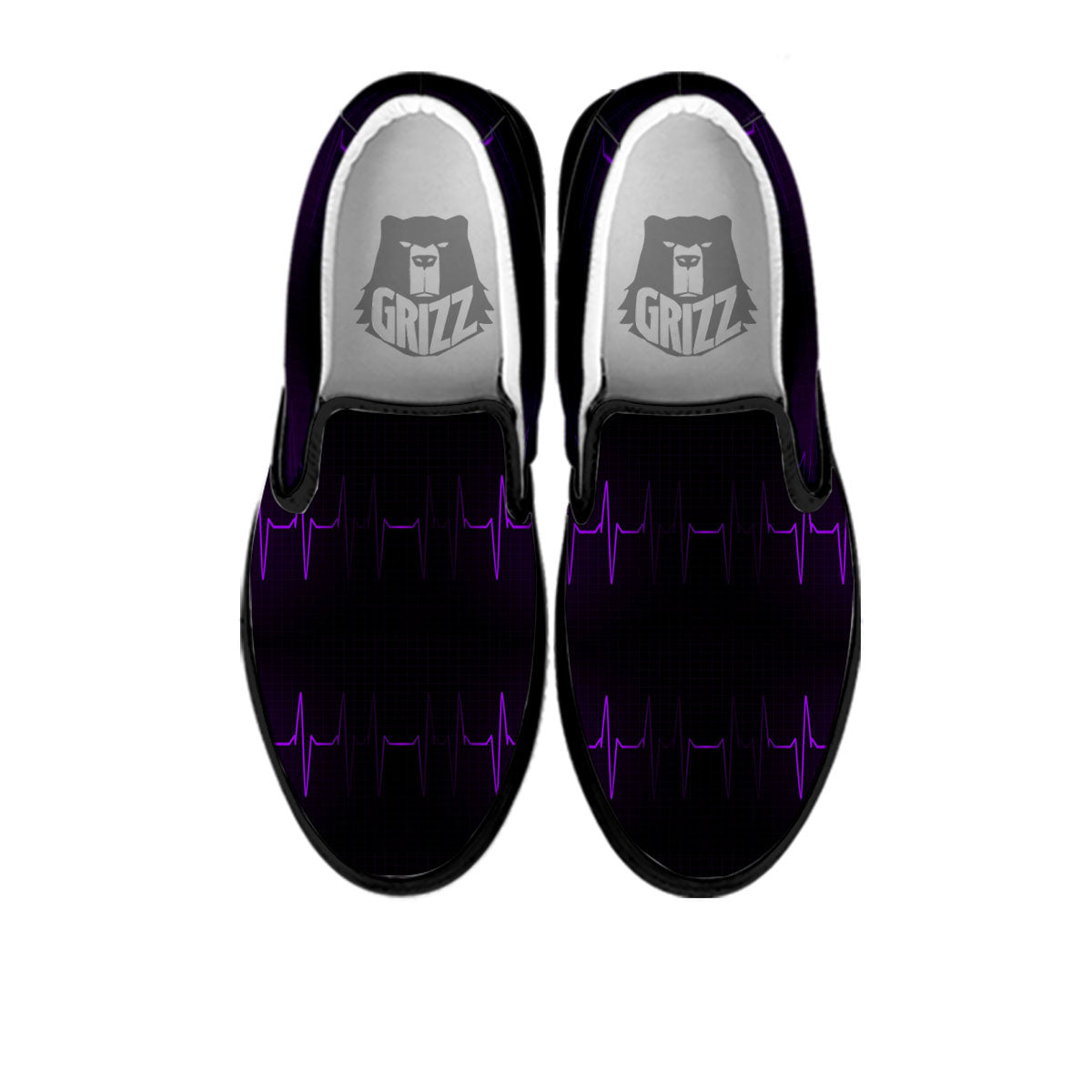 Heartbeat Purple Print Pattern Black Slip On Shoes