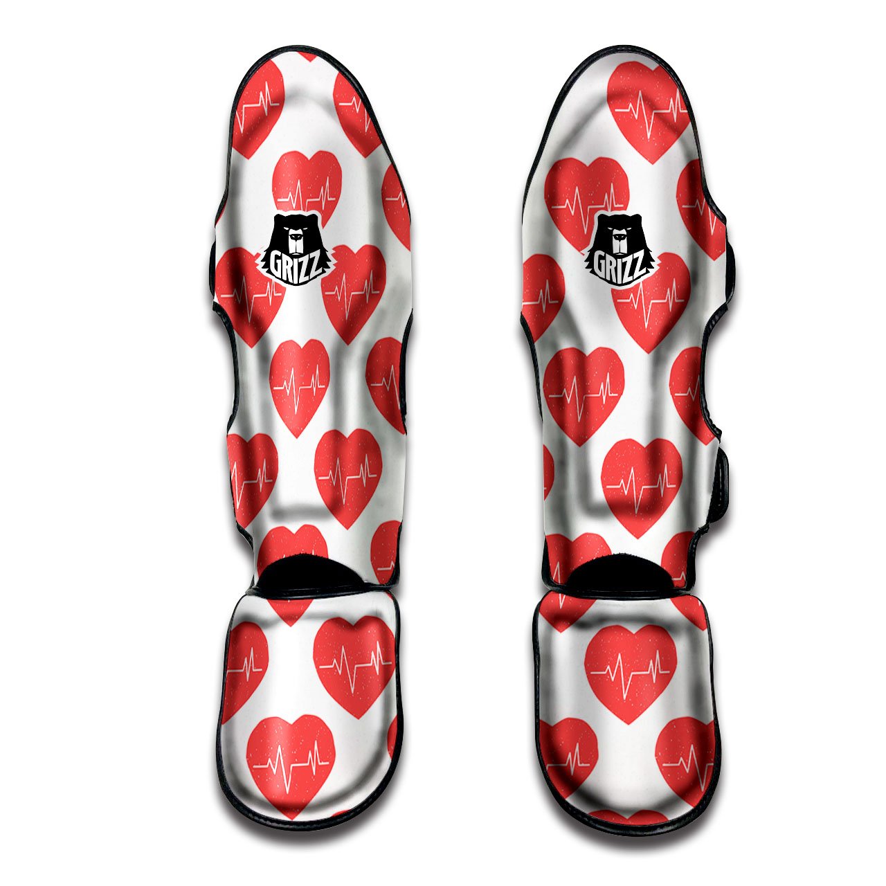 Heartbeat Red Print Pattern Muay Thai Shin Guards