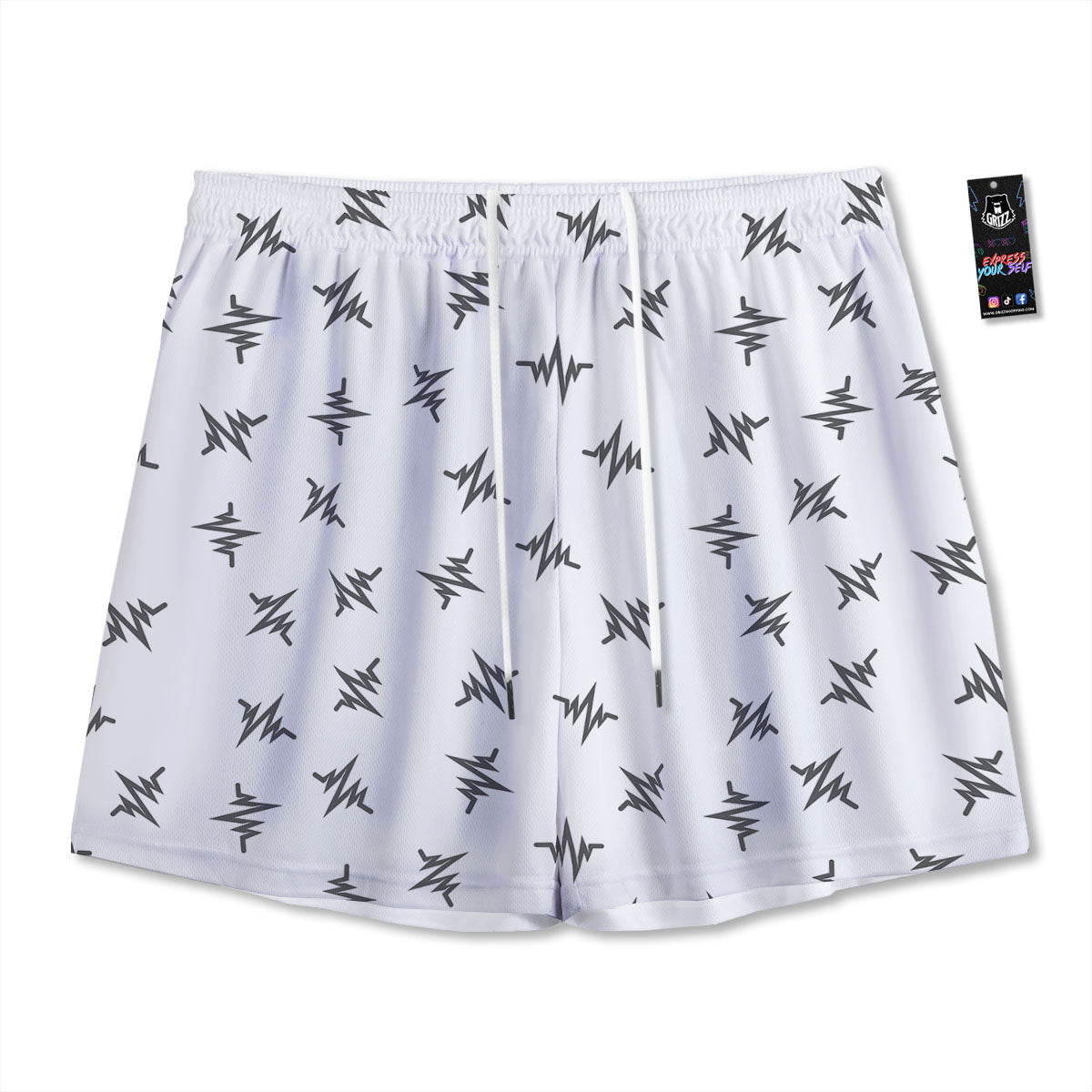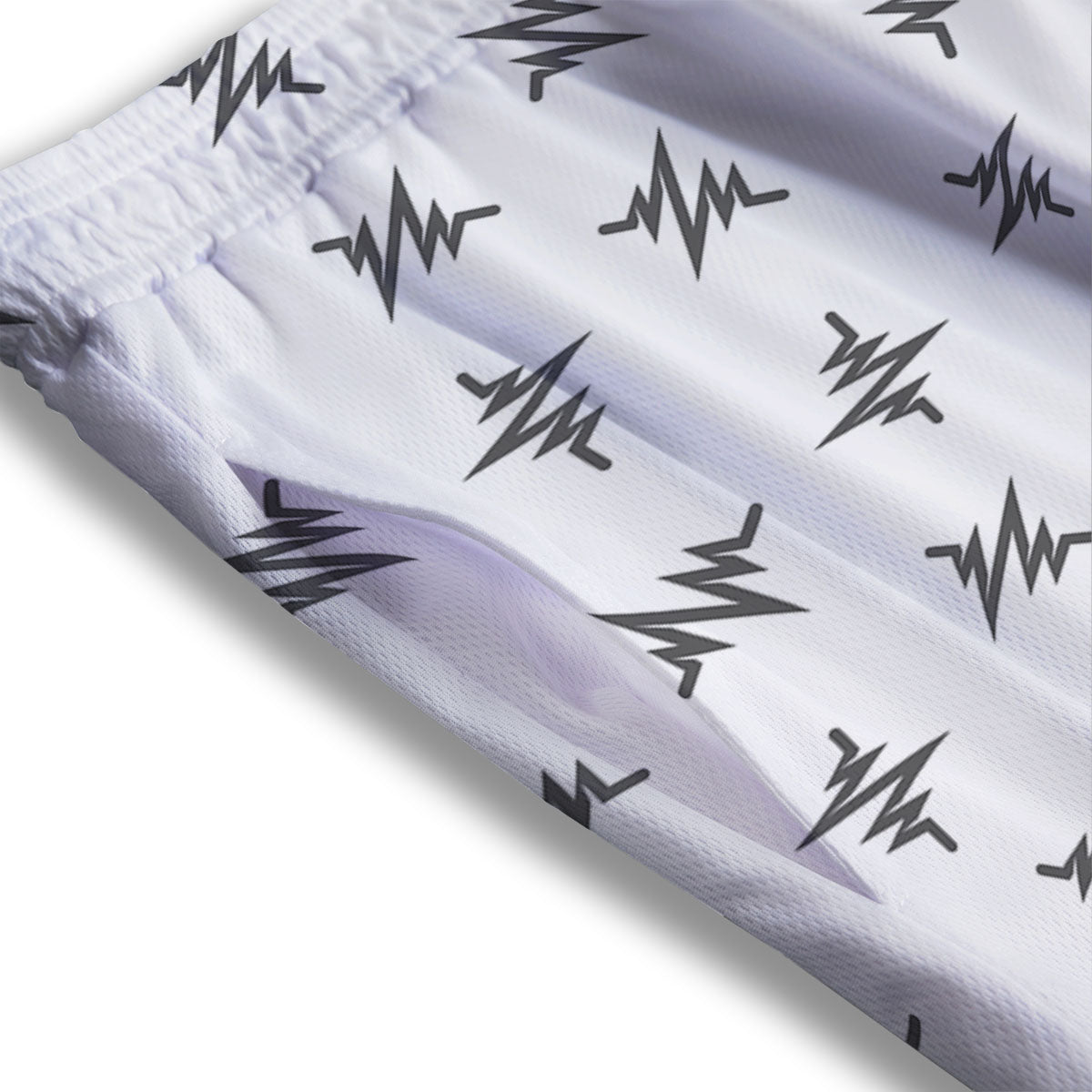 Heartbeat White And Black Print Pattern Mesh Shorts