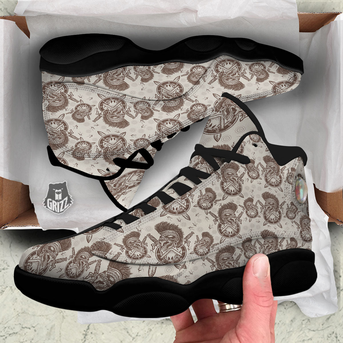 Helmet Spartan Warrior Print Pattern Black Basketball Shoes