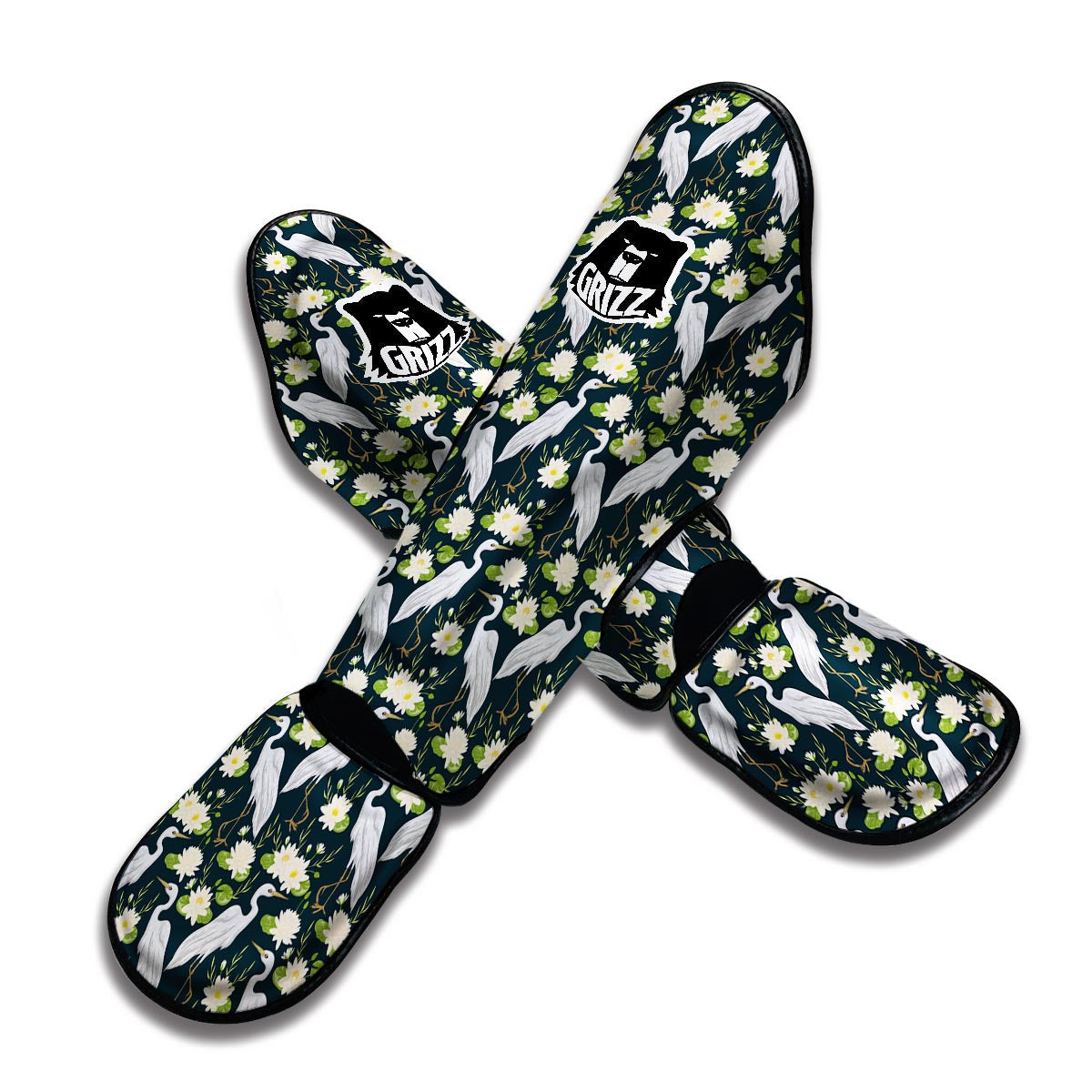 Heron Lotus Pattern Print Muay Thai Shin Guards