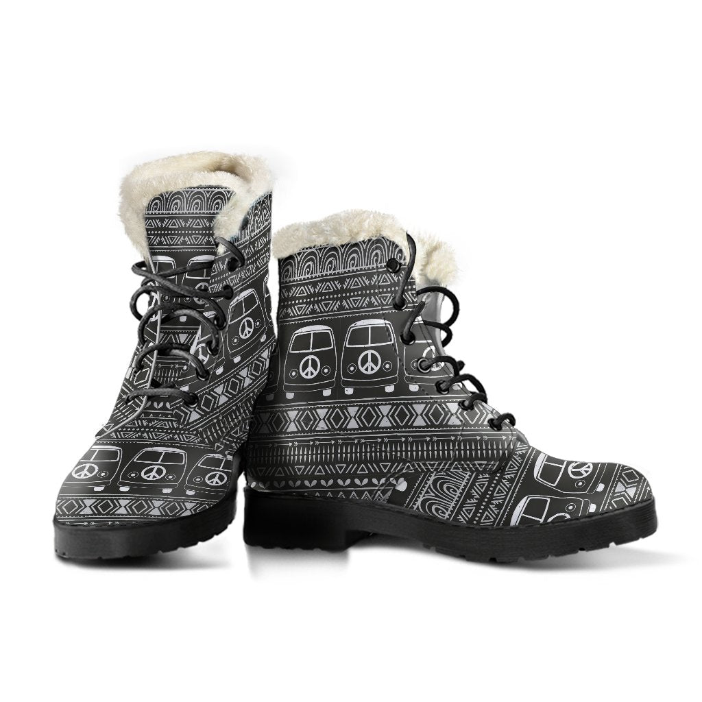 Hippie Aztec Van Peace Sign Pattern Print Comfy Winter Boots