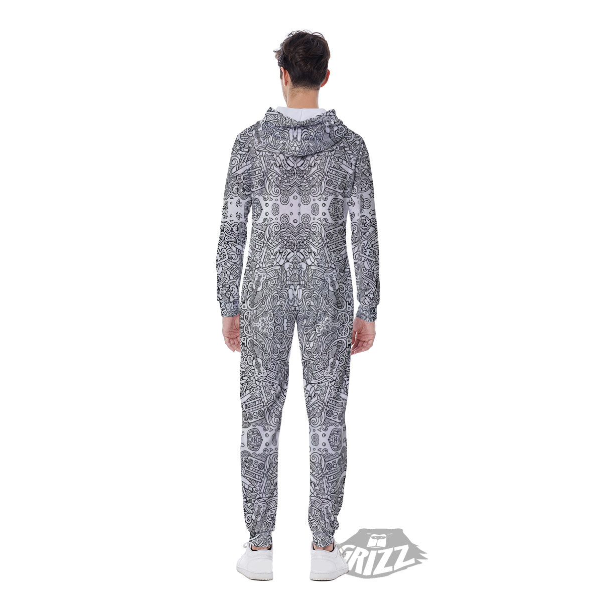Hippie Graffiti Monochrome Print Pattern Men's Jumpsuit