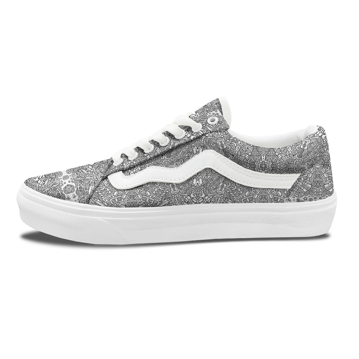 Hippie Graffiti Monochrome Print Pattern Skate Shoes