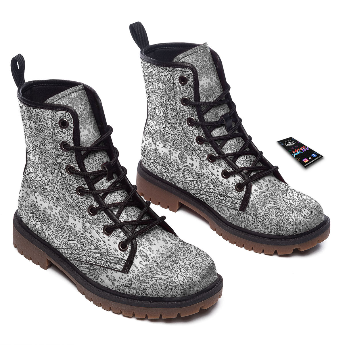 Hippie Graffiti Monochrome Print Pattern Work Boots