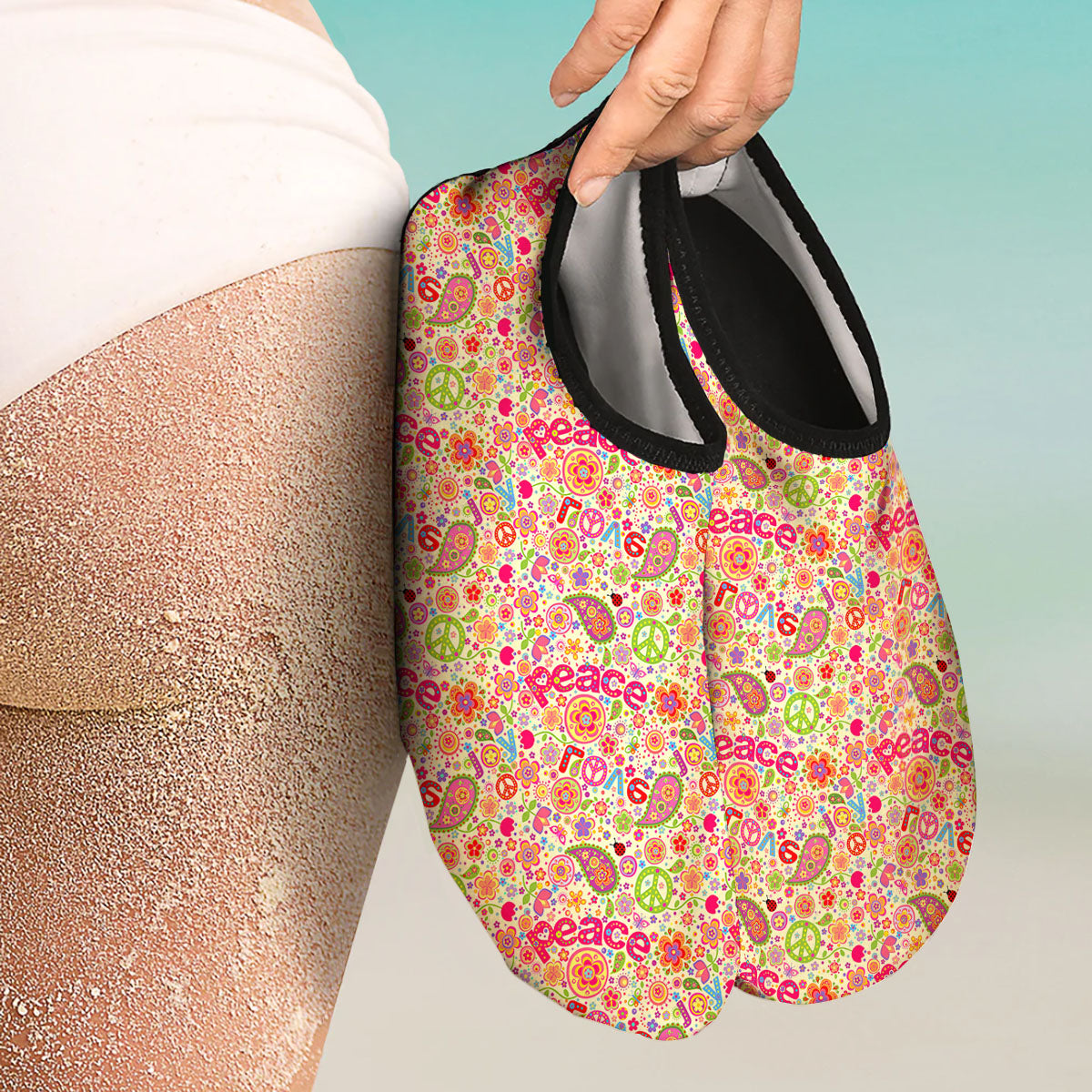 Hippie Peace Groovy Print Pattern Water Shoes