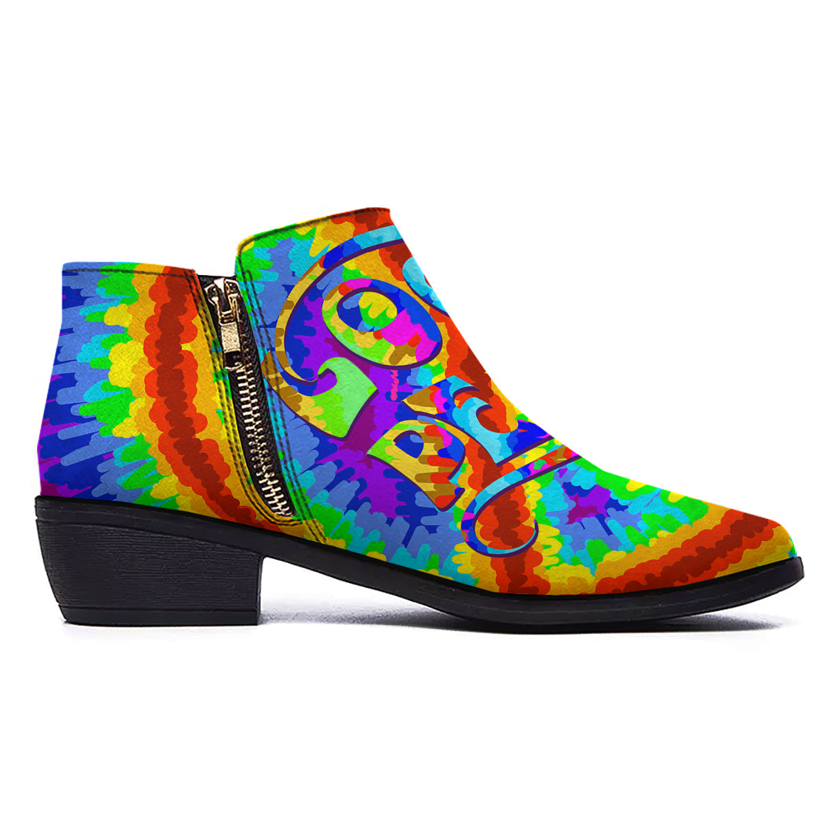 Hippie Symbol Colorful Abstract Print Ankle Boots
