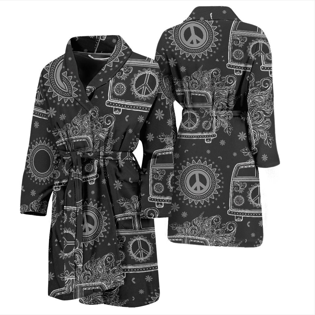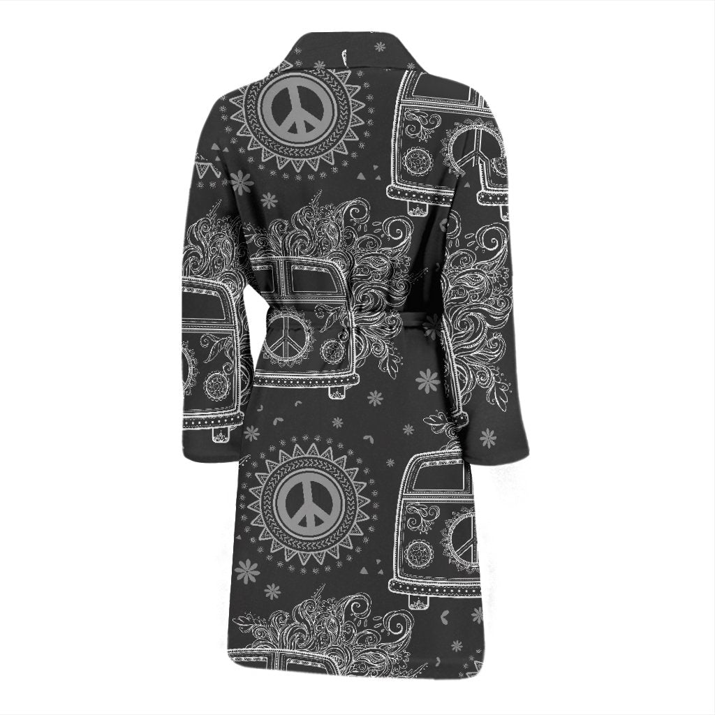 Hippie Van Peace Sign Pattern Print Men Long Robe