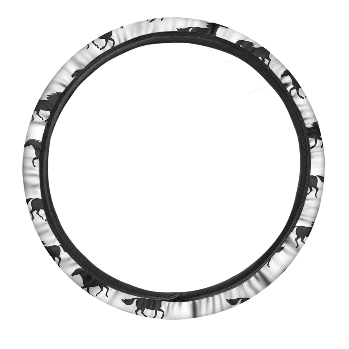 Horse White And Black Print Pattern Car Steering Wheel Cover