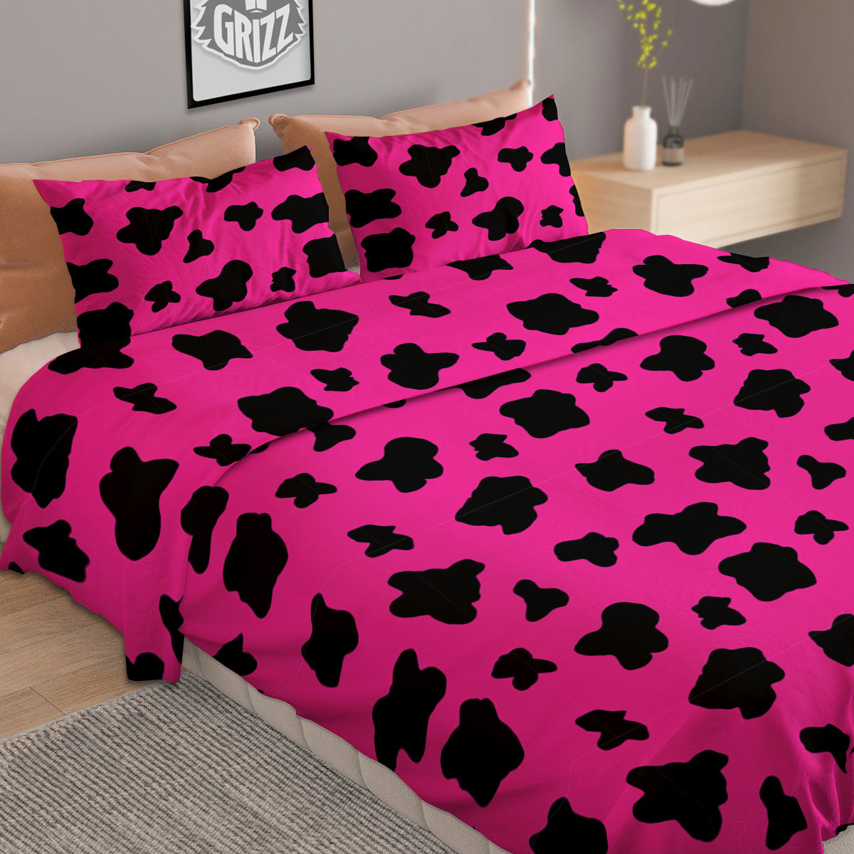 Hot Pink And Black Cow Print Duvet Cover Bedding Set