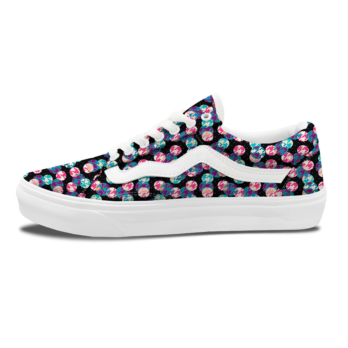 Houndstooth And Classic Polka Dot Print Pattern Skate Shoes
