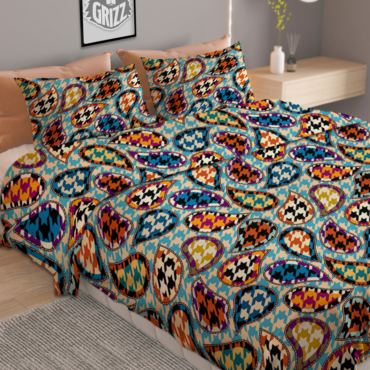 Looking for a unique duvet cover? Check out our Houndstooth And Paisley Print Pattern Duvet Cover Bedding Set at Grizzshopping. Our duvet cover are handcrafted to the highest quality standards that custom made for you