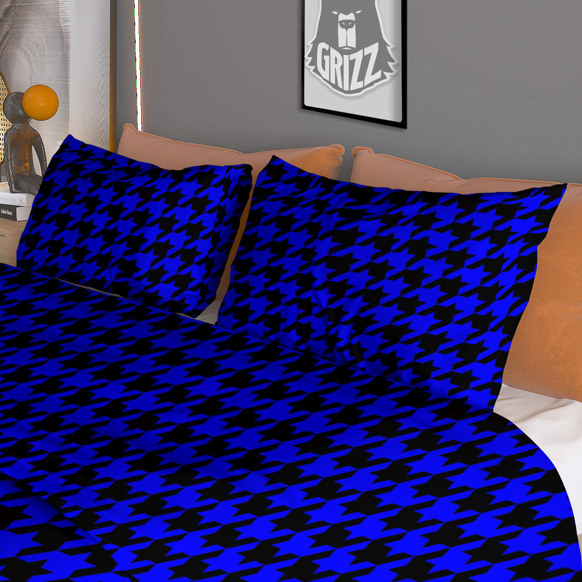Houndstooth Black And Blue Print Pattern Duvet Cover Bedding Set