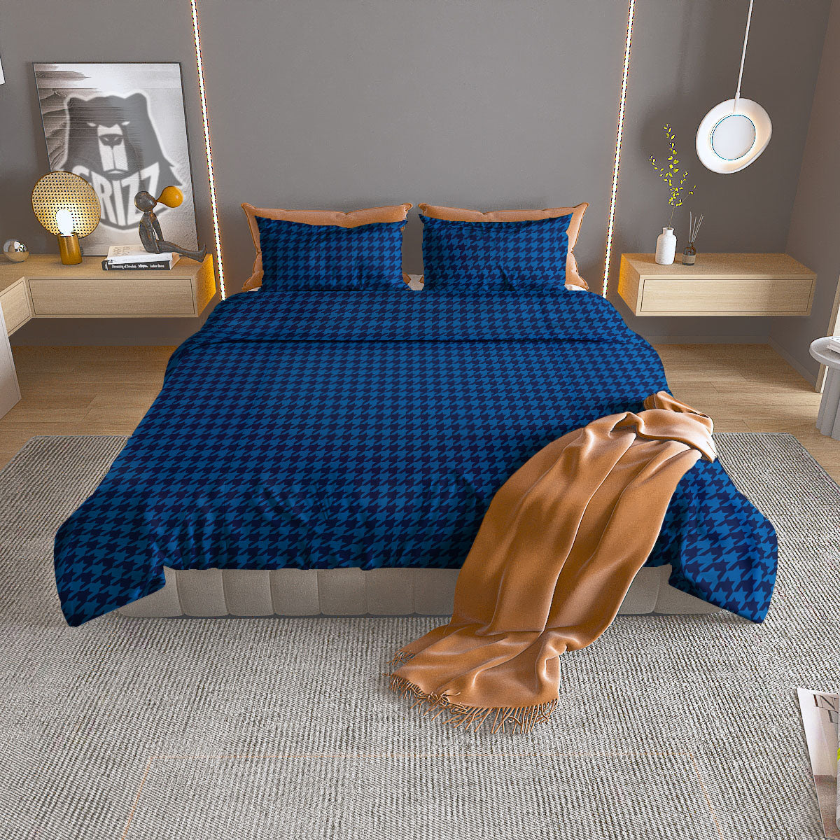 Houndstooth Blue Print Pattern Duvet Cover Bedding Set