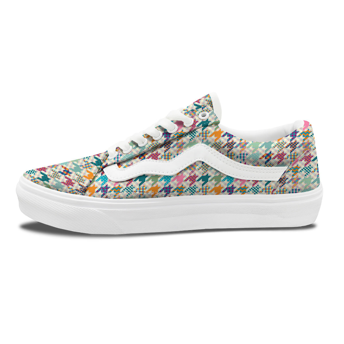 Houndstooth Colorful Plaid Print Pattern Skate Shoes