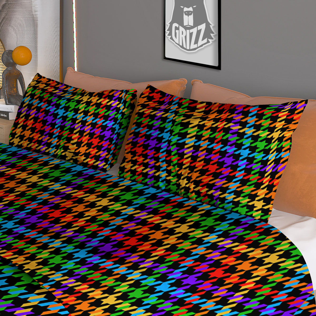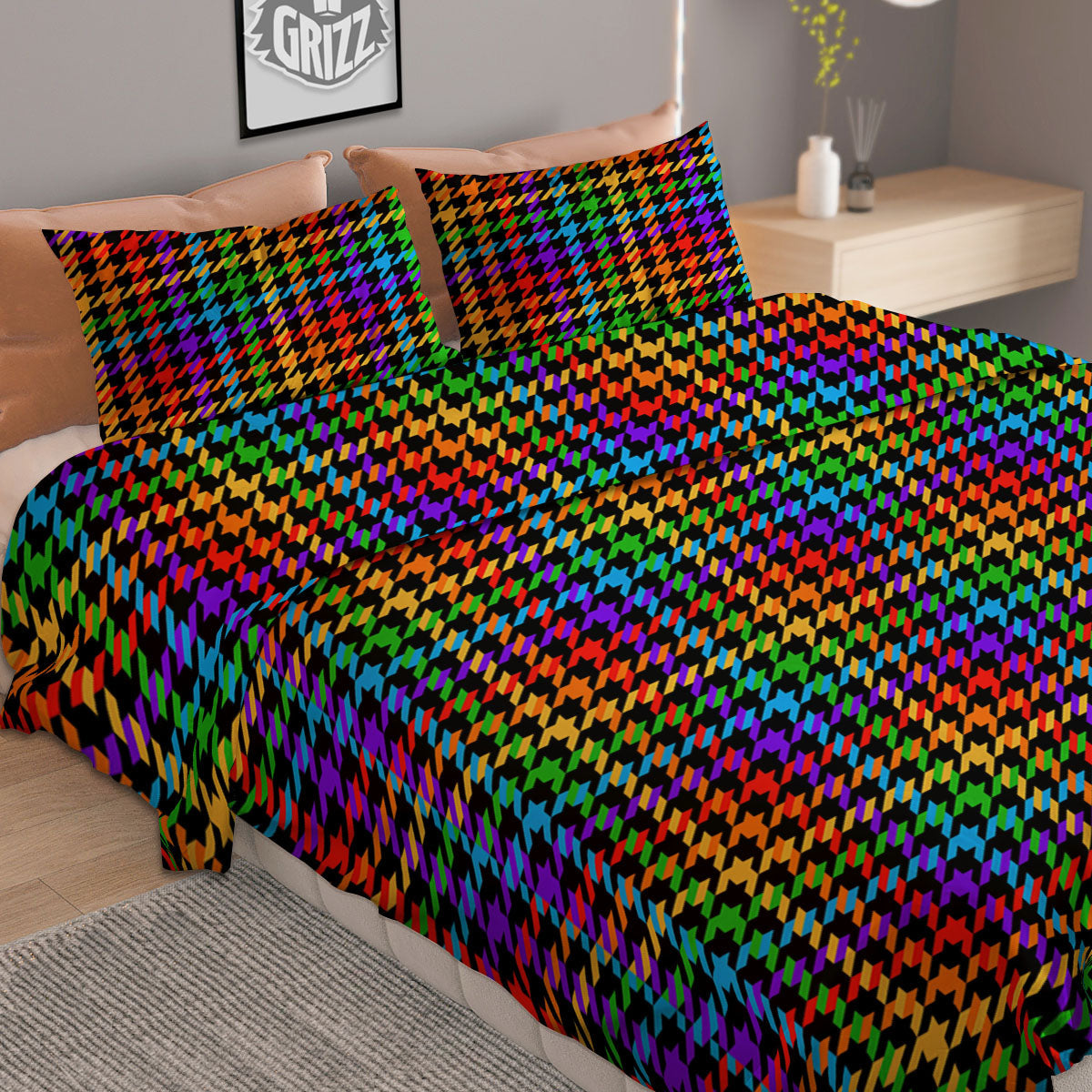 Houndstooth Rainbow Print Pattern Duvet Cover Bedding Set