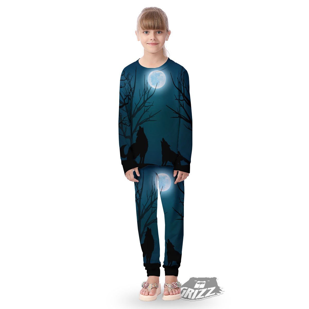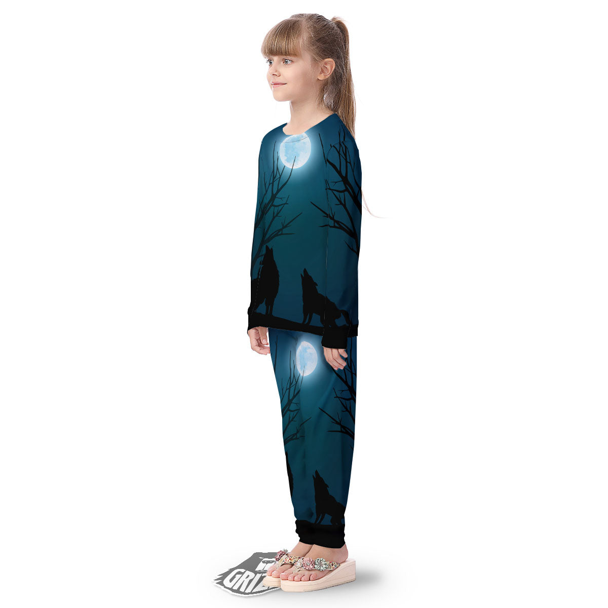 Howling Wolf At The Full Moon Print Kid's Pajamas