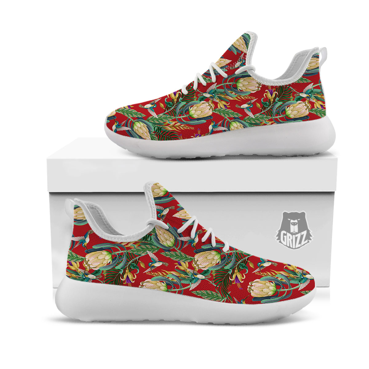 Hummingbird And Wild Flowers Print Pattern White Athletic Shoes