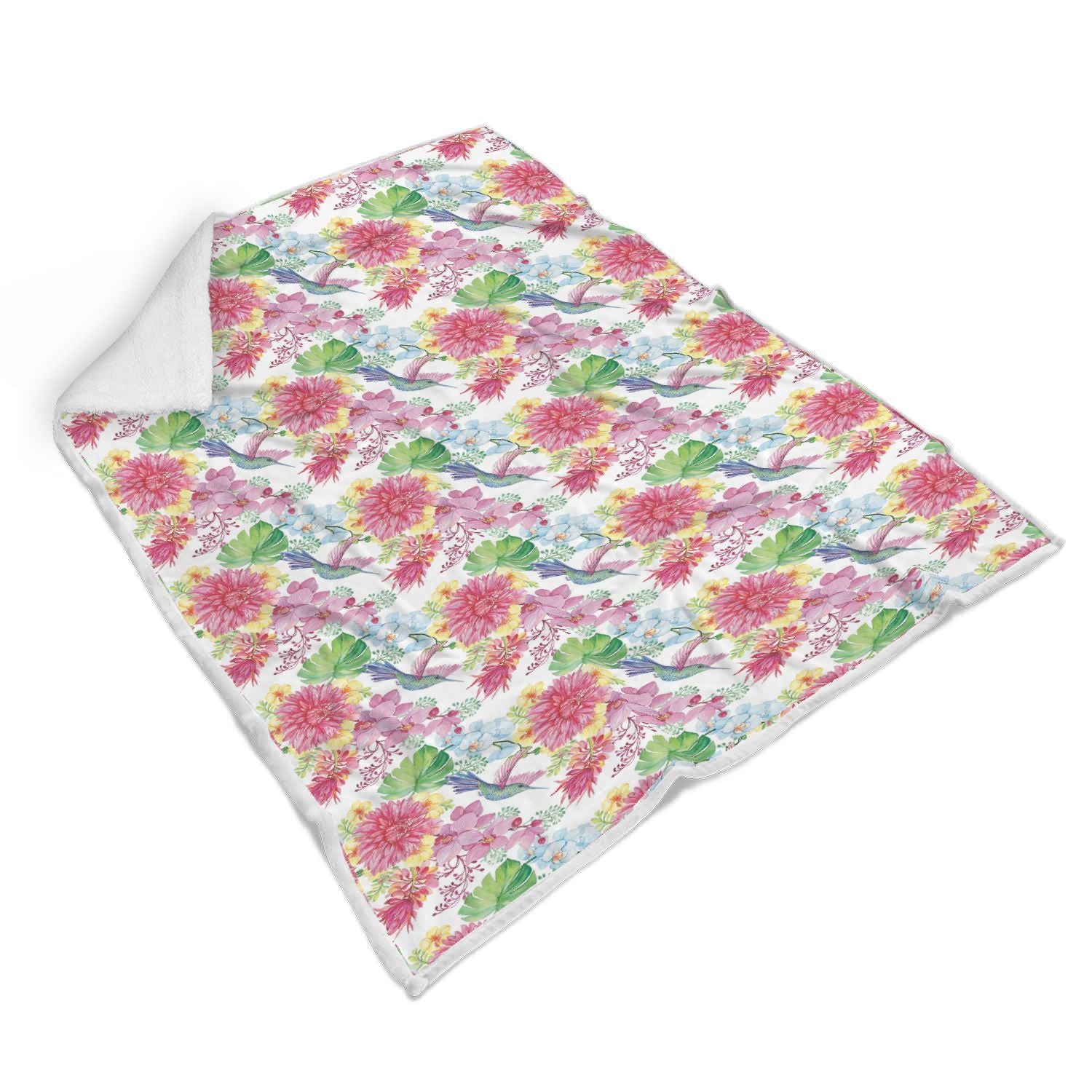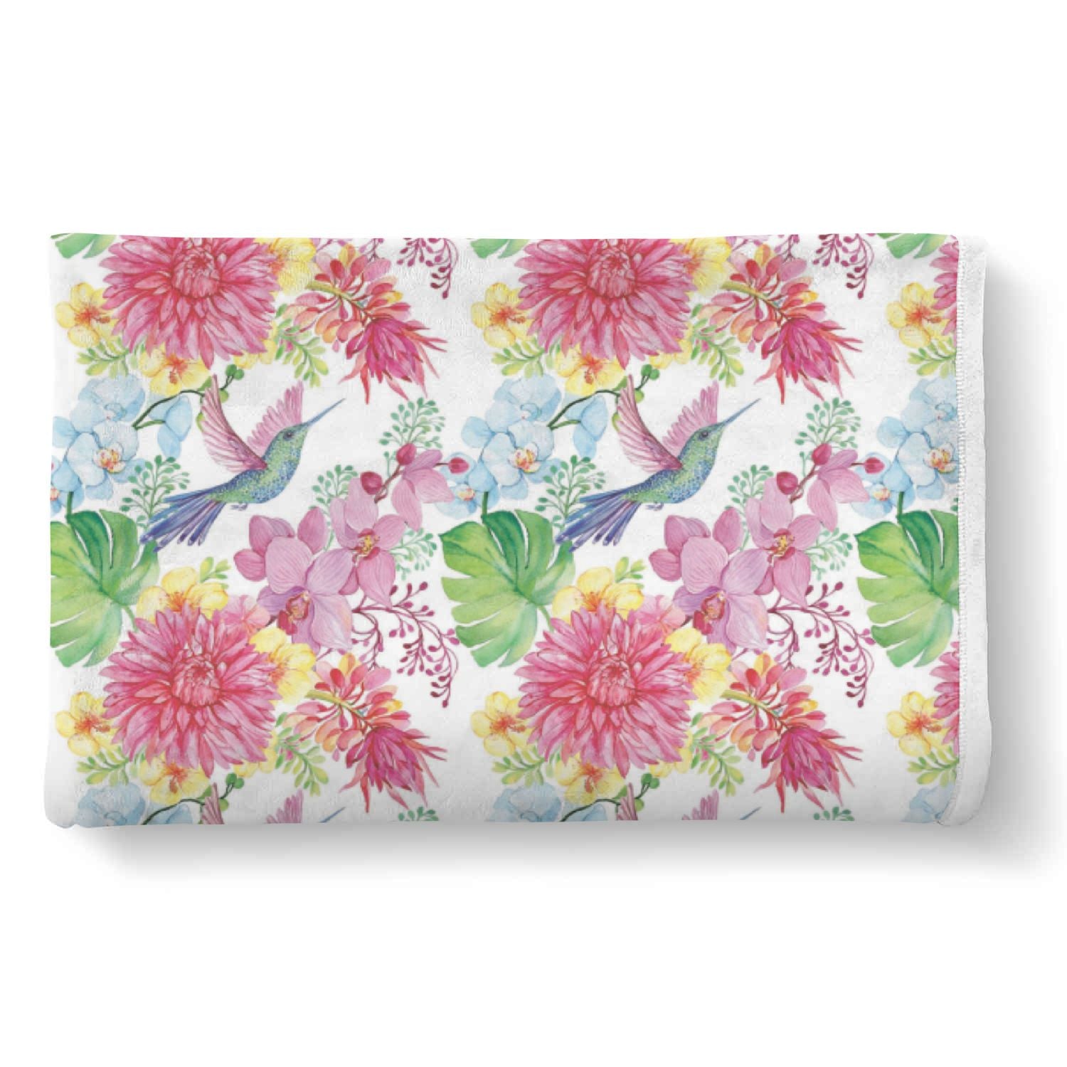 Hummingbird White Floral Drawing Pattern Print Throw Blanket