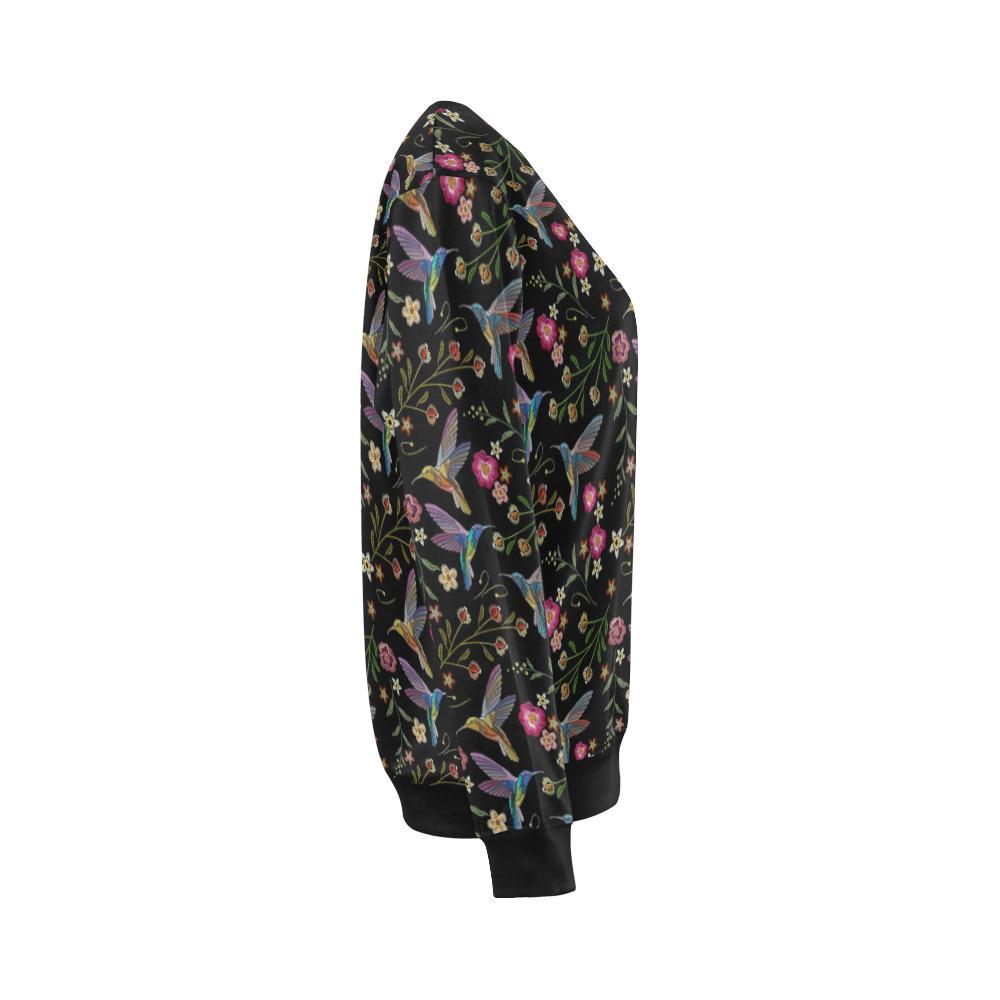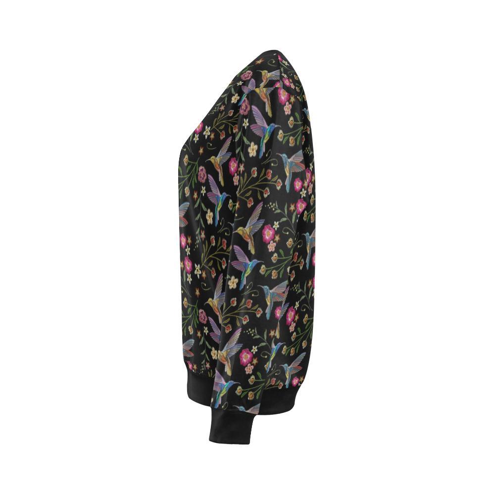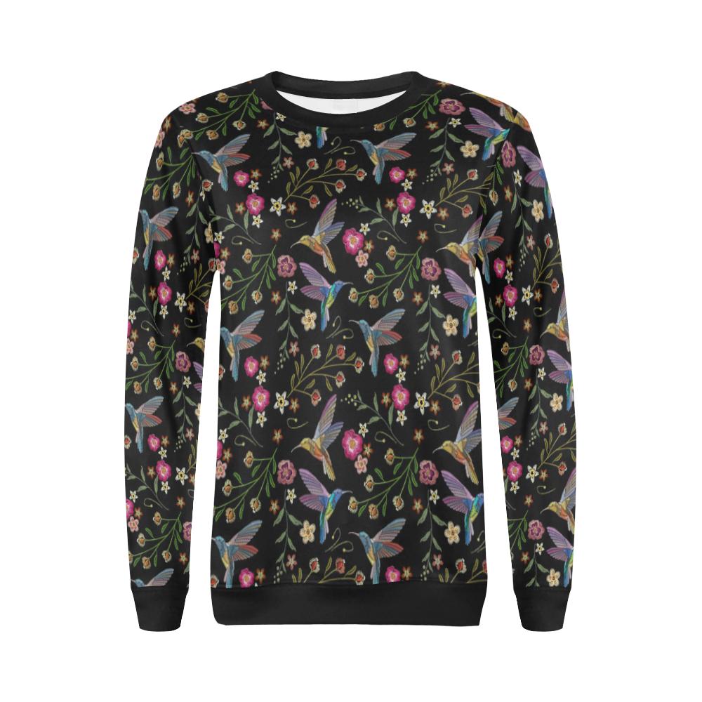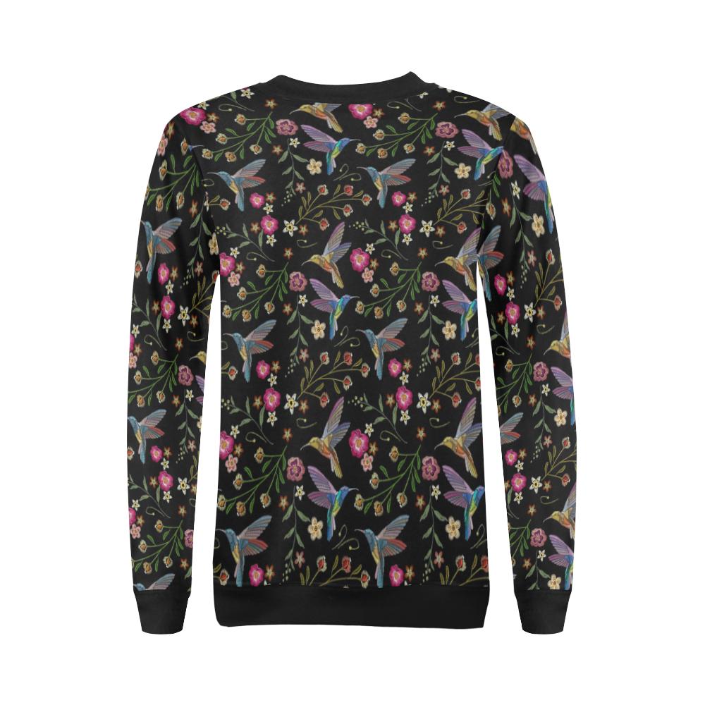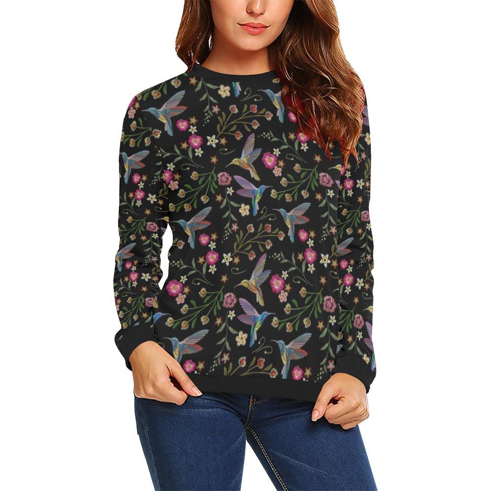 Hummingbird White Floral Pattern Print Women Crewneck Sweatshirt