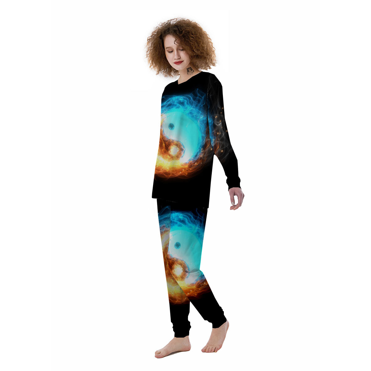 Ice And Fire Sparkle Yin Yang Print Women's Pajamas