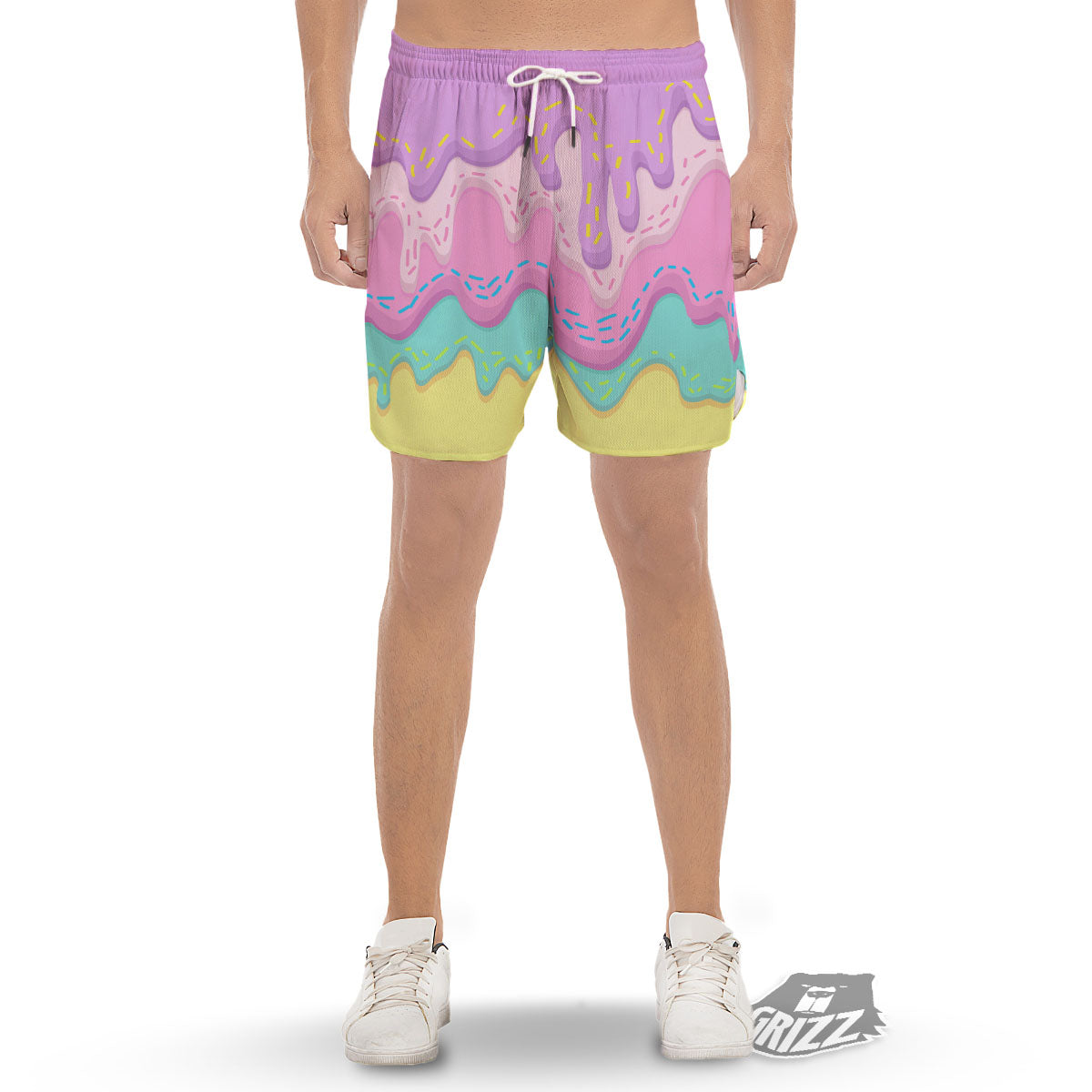 Ice Cream Dripping Pastel Print Men's Gym Shorts
