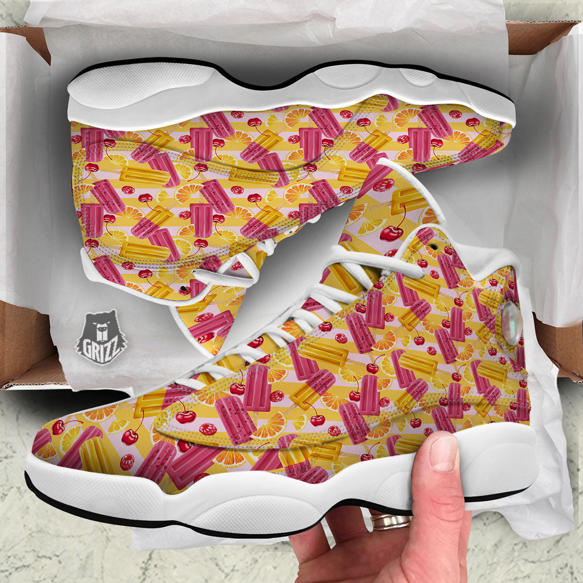 Ice Cream Fruits And Berries Print Pattern White Basketball Shoes